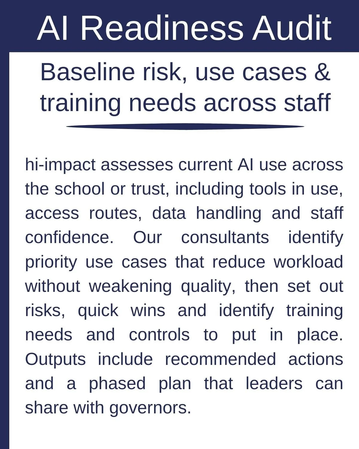 The difference between progress and noise is clarity on approved tools, safe boundaries and a shared standard of practice. hi-impact supports leaders to set direction, reduce risk and help staff use AI well, without creating extra complexity.