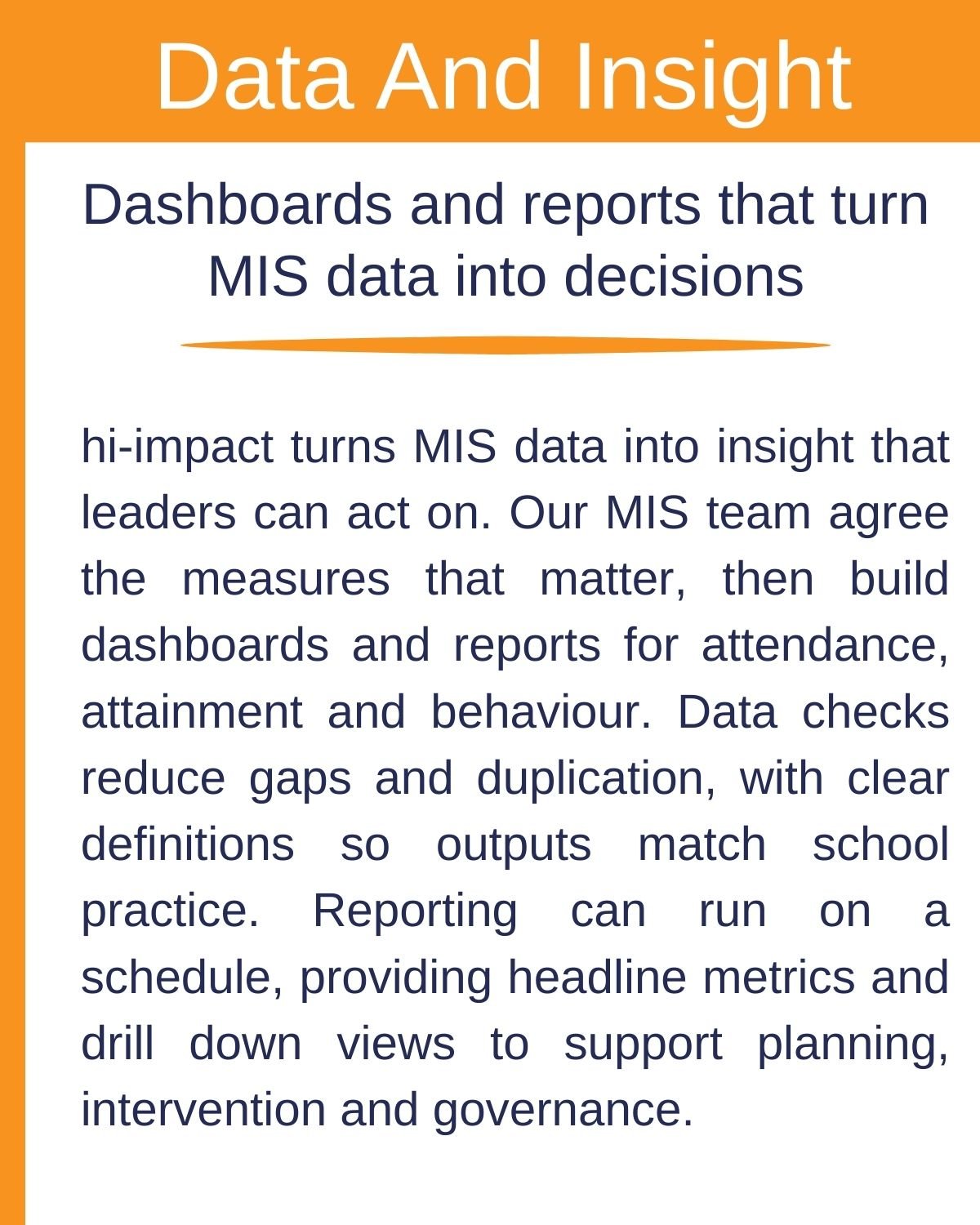 hi-impact provides a dedicated MIS service desk and specialist support team to support schools and trusts with the effective day-to-day use of their MIS.